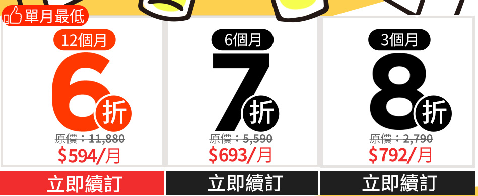 12個月方案享6折優惠 2021/04/01起至2022/03/31