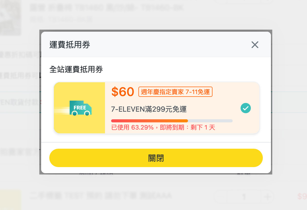 結帳時選用『週年慶指定賣家運費抵用券』即享7-ELEVEN免運費優惠